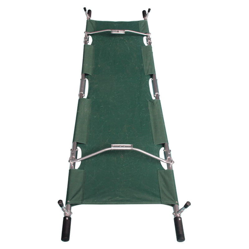 Esta maca possui uma estrutura de liga de alumínio de alta resistência, apresentando leveza, tamanho pequeno, fácil portabilidade e uso seguro. Sua superfície de maca em couro Oxford garante o conforto do paciente; com quatro pernas de suporte, funciona em locais irregulares. Possui duas cintas de segurança (para segurança no transporte) e punhos antiderrapantes. Dobrável vertical e horizontalmente, vem com uma bolsa portátil com cordão para economizar espaço. Adequado para hospitais, clínicas, ambulâncias, combate a incêndios, campos de batalha militares, empresas, clínicas rurais, casas de repouso e pontos turísticos para transportar os doentes/feridos. Tamanho, tecido e cor são personalizáveis (cores comuns: azul, laranja, verde); a bolsa pode ser de tecido comum ou do tipo bagagem.